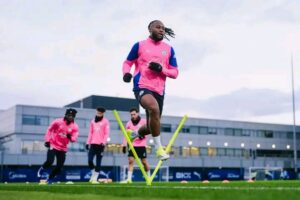 The photos, which quickly went viral across social media platforms, capture Semenyo actively participating in drills alongside other Manchester City players, dressed in the club’s distinctive pink and blue training kit.